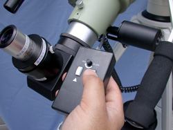 国際光器オリジナル「ニューガイディングハンドル:NGH」はビクセンPORTA II経緯台の為に開発したシンプルで、なおかつ極めて便利な把手です。鏡筒本体を触らずに、NGHを持って望遠鏡を見たい方向へ向けます。小さな工夫ですが、NGHはPORTA IIのような、フリーストップ機能のある経緯台には文字どおり理想的な「ハンドル」となります。望遠鏡をおおよそ目的の方向へ指向させる場合にはNGHを使用し、微妙な動作にはPORTAIIに備わっている微動装置を使えば快適に目標天体を導入できます。NGHは、¥4,800で単品販売しておりますが、「PORTAII RFT-120セット」には標準装備しています。