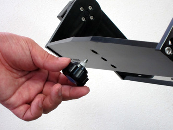 フォークマウント「ブルドッグ」には目立ちませんが2つの独自の工夫があります。1つ目はプレート上の鏡筒のバランス調整に便利な3ポジションの取付けネジ穴があり、ある程度鏡筒の位置を前後に変えられます。2つ目に取付けネジ自体も専用オリジナル設計製作による掴み易い大型3/8インチ固定ノブネジが付属しています。